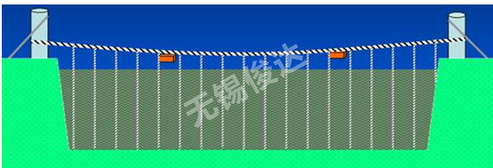 Applied to river width less than 60m; the minimum position of horizontal steel wire rope shall be higher than 0.5m above maximum water level; the electrode array is hanged on the top of design section.