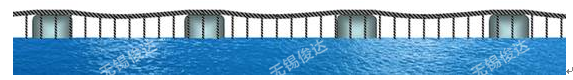 For river width within 10 kilometer, the spacing of floating tank is less than 50m, and the minimum position of horizontal steel wire rope shall be slightly higher than water. The electrode array is connected with the floating tank that is fixed on the water of design section.